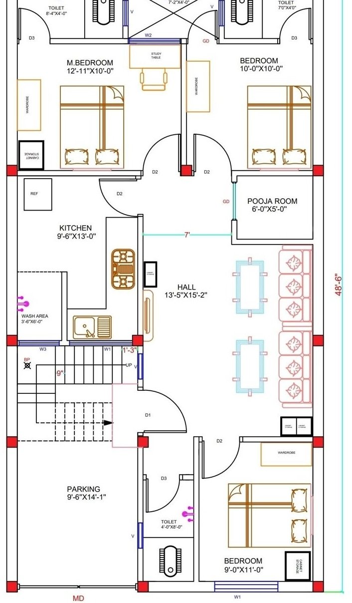 25 x 48.6 Feet 2D Layout